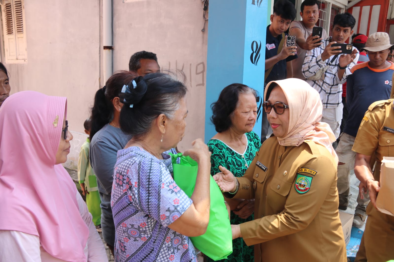 Usai meninjau lokasi, Wakil Bupati turut menyerahkan bantuan sembako kepada warga terdampak banjir, sekaligus bersilaturahmi dan menyampaikan belasungkawa kepada keluarga korban meninggal dunia akibat banjir di Kelurahan Ngelo.(MC Kab Blora/Teguh/Eyv).