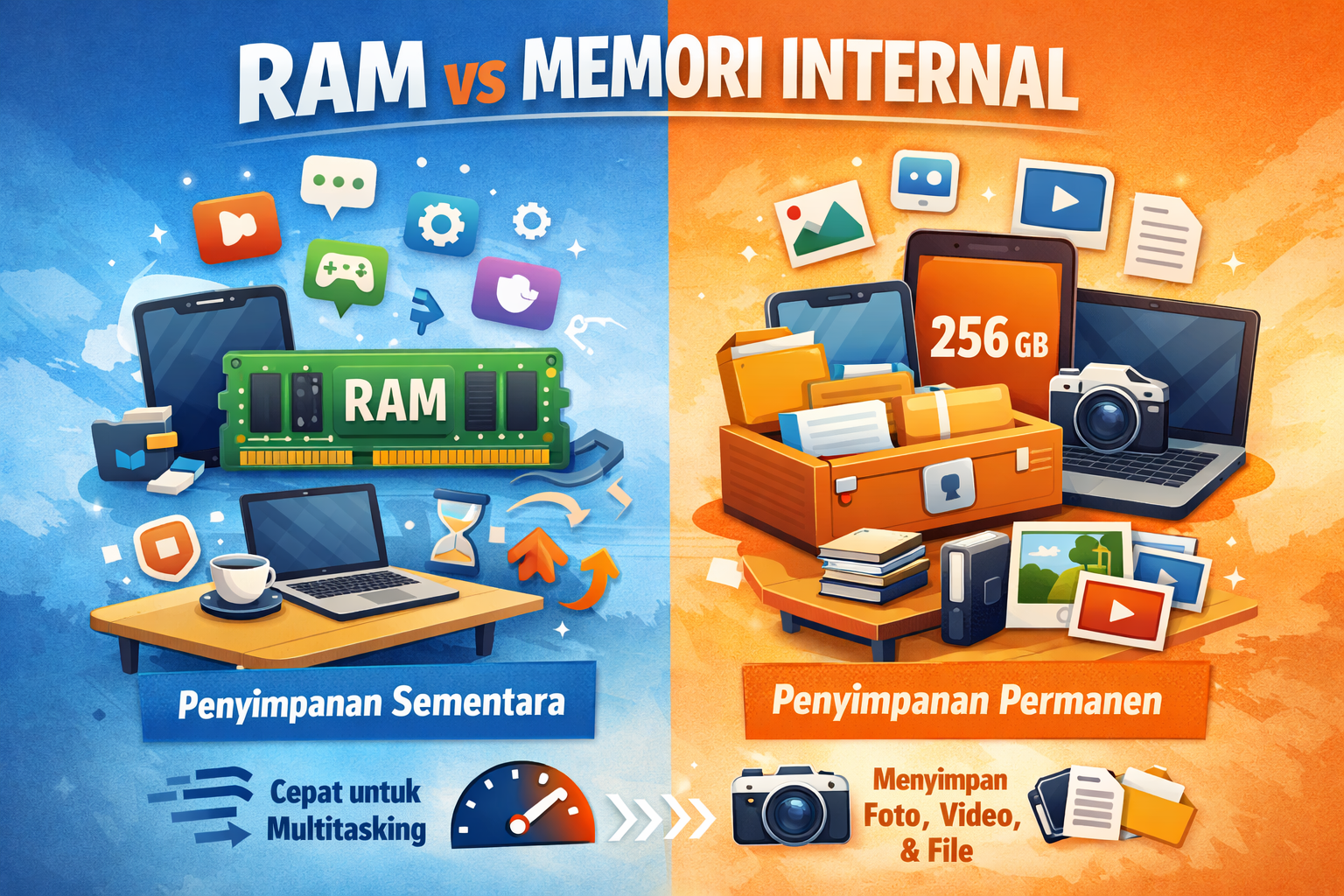 Gambar Ilustrasi AI perbedaan RAM dengan memori internal