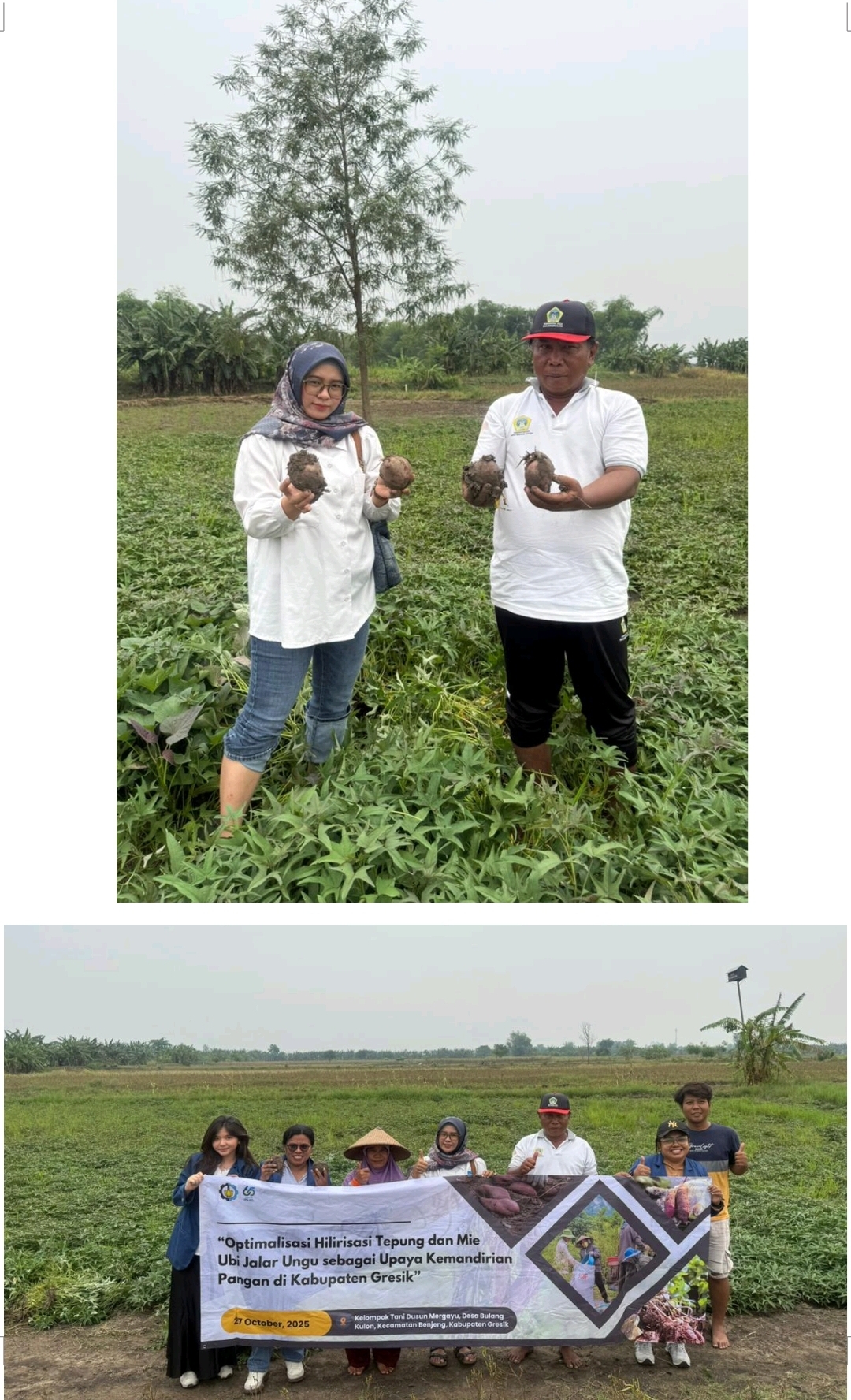 Tine Indonesia – Bulang Kulon, Gresik — 27 Oktober 2025 Tim Pengabdian Masyarakat dari Institut Teknologi Sepuluh Nopember (ITS) melaksanakan program bertema “Optimalisasi Hilirisasi Tepung dan Mie Ubi Jalar Ungu sebagai Upaya Kemandirian Pangan di Kabupaten Gresik” pada 27 Oktober 2025 di Desa Bulang Kulon, Kecamatan Benjeng, Gresik. Kegiatan ini dipimpin oleh Sri Fatmawati, Ph.D., dan bekerja sama dengan Ketua Gapoktan Desa Bulang Kulon, Bapak Suparno, beserta kelompok petani setempat.