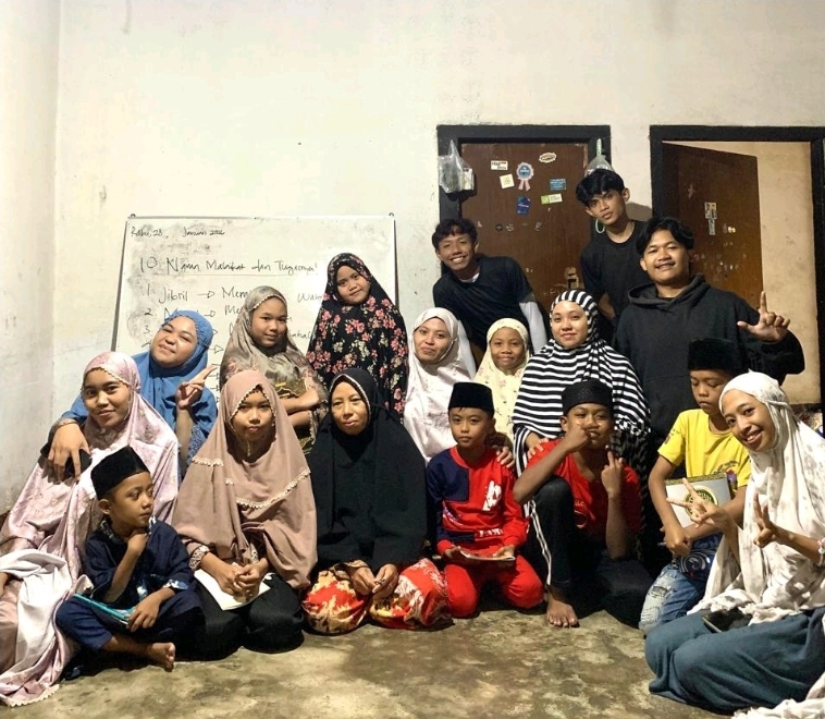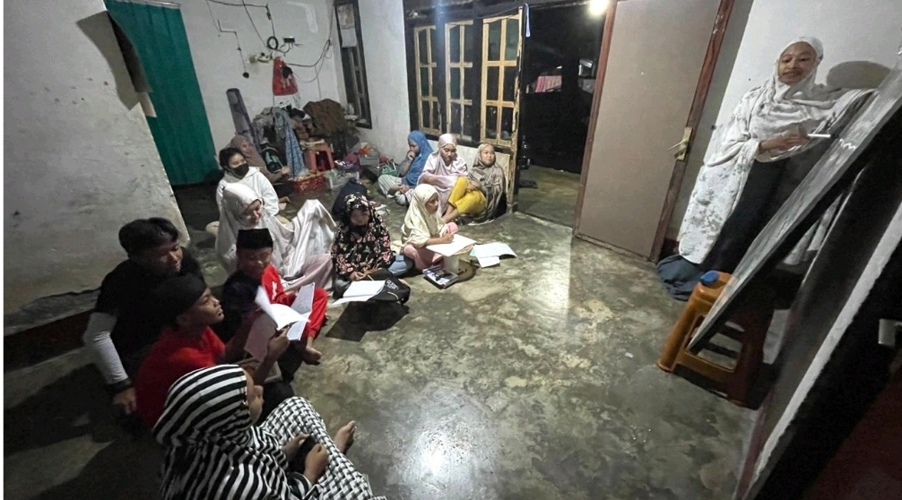 Pelaksanaan kegiatan Ruang Belajar pada Maghrib dimulai setelah anak-anak selesai mengikuti kegiatan. Sejak awal kegiatan, suasana rumah Ibu Atik sudah mulai ramai dengan kedatangan anak-anak yang datang dengan penuh semangat dan rasa ingin belajar yang tinggi. Antusiasme ini terlihat dari banyaknya anak-anak yang hadir, mulai dari yang sudah lancar membaca dan berhitung hingga anak-anak yang masih belum bisa membaca sama sekali. Hal tersebut menunjukkan besarnya kebutuhan akan bimbingan belajar di luar jam sekolah serta tingginya minat anak-anak untuk terus belajar.