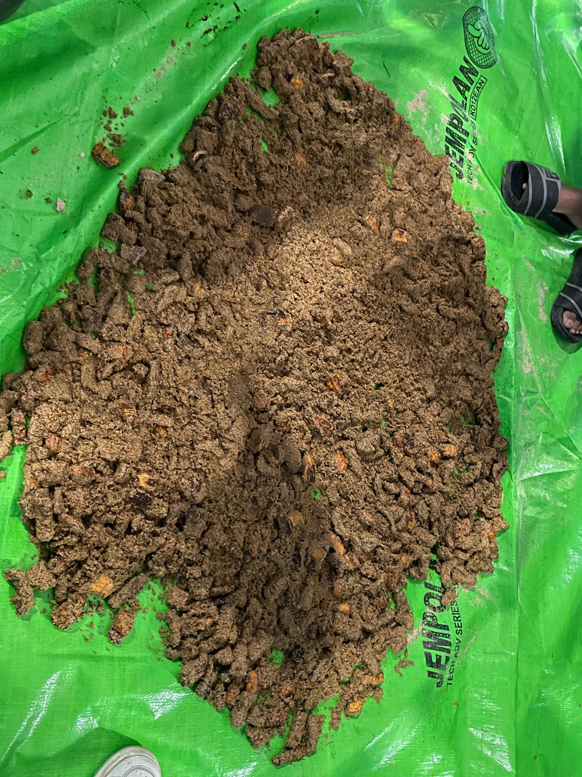 Setelah sesi pemaparan materi, kegiatan dilanjutkan dengan praktik atau pelatihan pembuatan pakan ternak secara langsung di lokasi. Dalam sesi ini, peserta diajak untuk melihat dan terlibat langsung dalam proses pengolahan limbah kulit kakao, mulai dari tahap persiapan bahan, pengolahan, hingga pakan siap diberikan kepada ternak. Praktik langsung ini bertujuan agar peserta tidak hanya memahami konsep, tetapi juga memiliki keterampilan praktis yang dapat diterapkan secara mandiri di rumah atau kelompok ternak masing-masing.