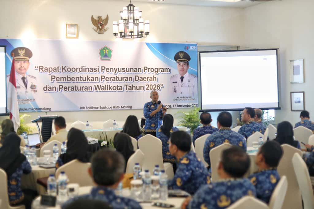 Time Indonesia – Bagian Hukum Sekretariat Daerah (Setda) Kota Malang menggelar Rapat Koordinasi (Rakor) Penyusunan Program Pembentukan (Propem) Peraturan Daerah (Perda) dan Peraturan Wali Kota (Perwal) 2026 di The Shalimar Boutique Hotel Malang, Rabu (17/9/2025).